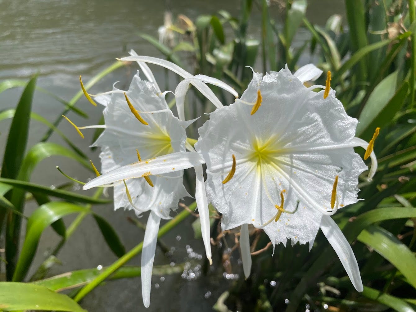 Even in a newsletter edition that’s focused on book reviews, I can’t help sharing a flower photo with you before signing off! This one’s from an excursion I made with my family last week to see the rare Cahaba Lilies in bloom. It required a 1 1/2 hour drive, a trek along a muddy gravel road, and wading out over algae-slicked rocks into the middle of a swift river current to see them—but oh, it was worth it!